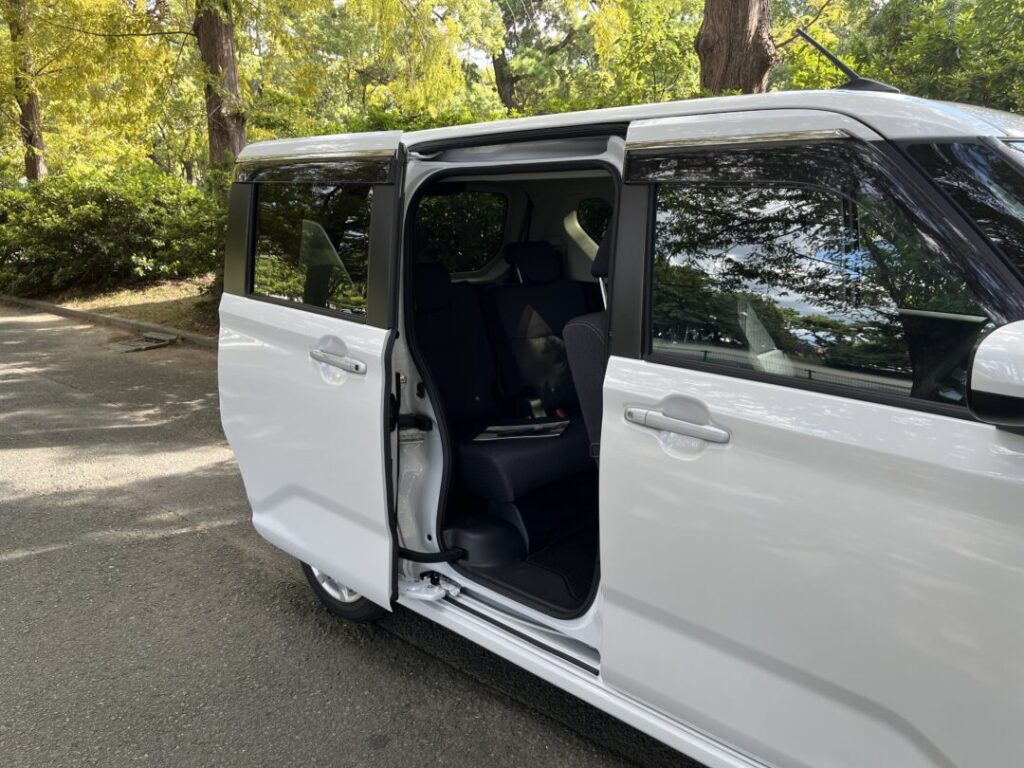 車内は、乗る前の印象よりも広々としていて快適で、両側パワースライドドアのおかげで荷物の積み込みもスムーズに行えます。