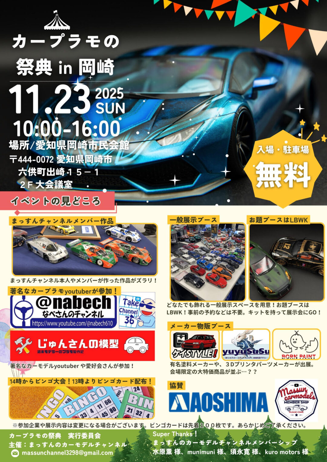 「まっすんのカープラモチャンネル」が主催する恒例のカーモデル展示会が、今年も愛知県岡崎市にて盛大に開催されます。