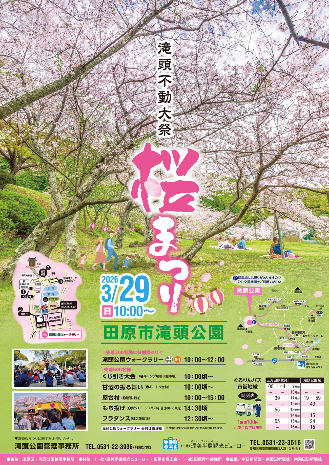 田原市を代表する桜のスポット「滝頭公園」が、今年もピンク色に染まります🌸