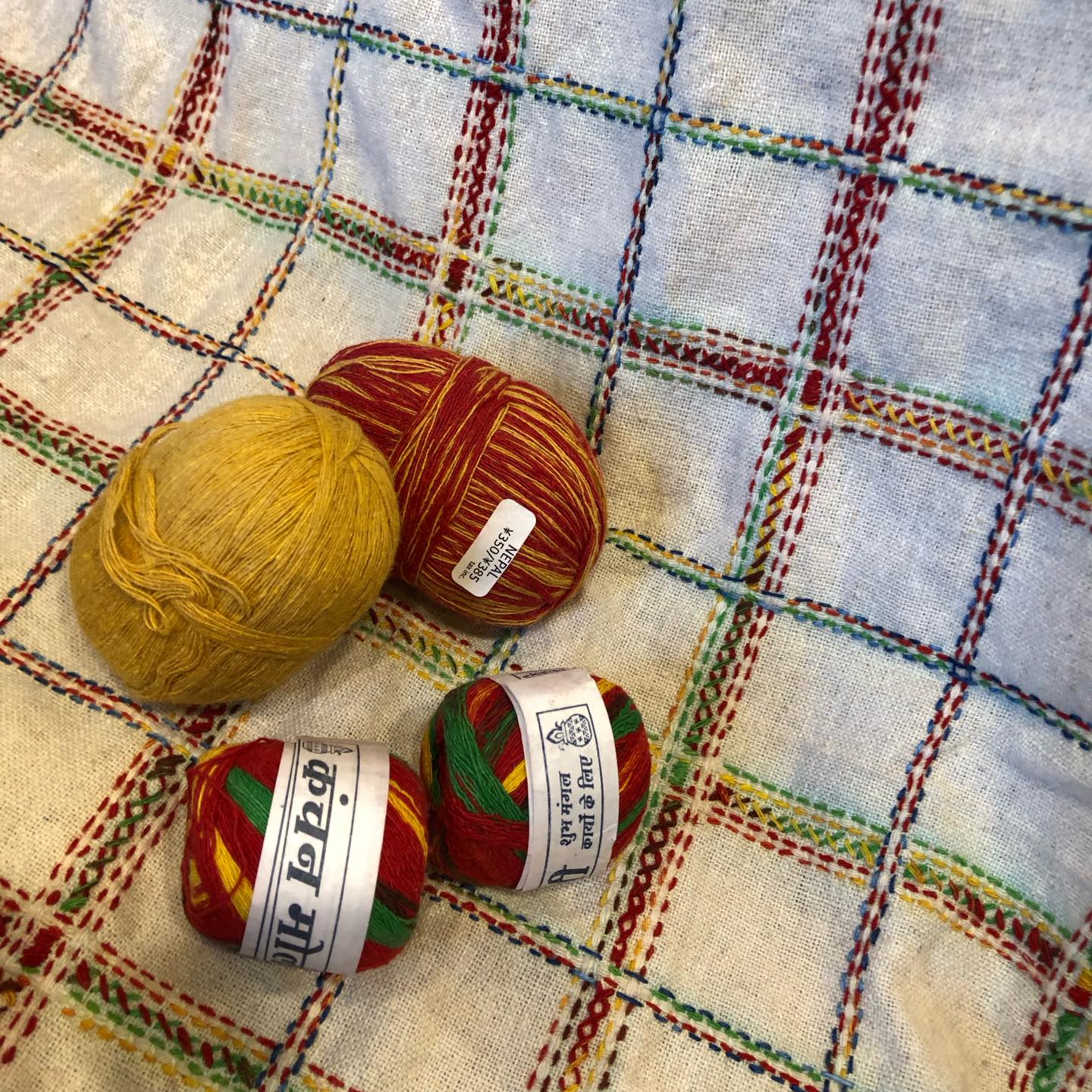 北インド ヒマチャルから届いたニット小物 くつ下、手袋、巾着なども