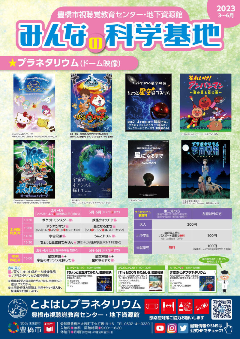 | プラネタリウム観覧料 | 大人300円、中学生以下100円 |