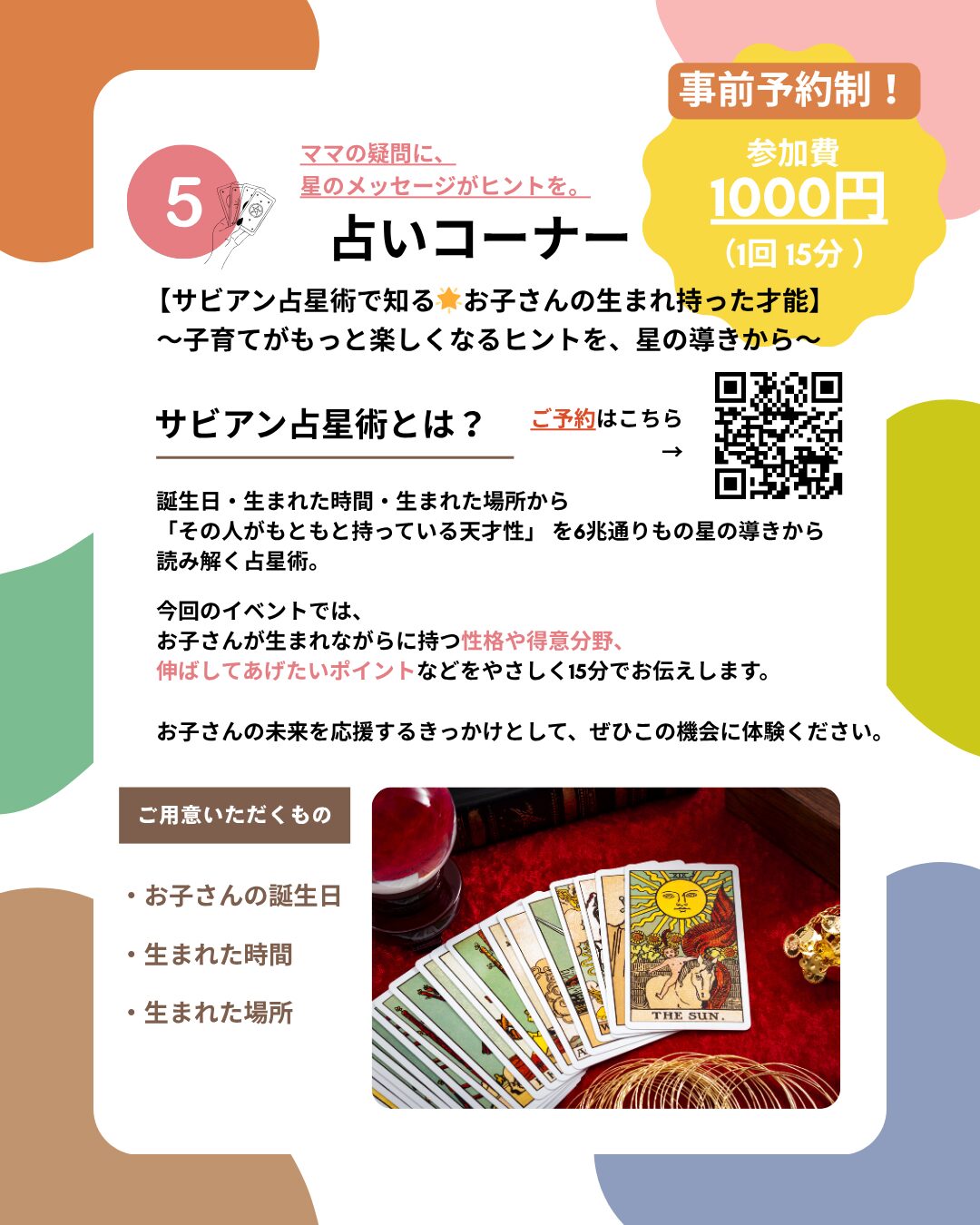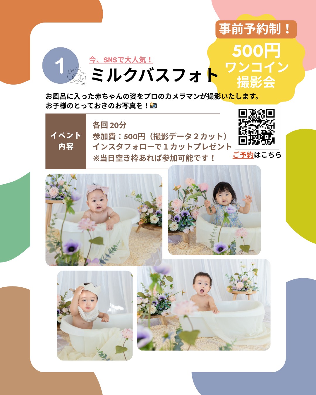 はじめての写真撮影や、赤ちゃんのレース体験、占いやセミナーなど、