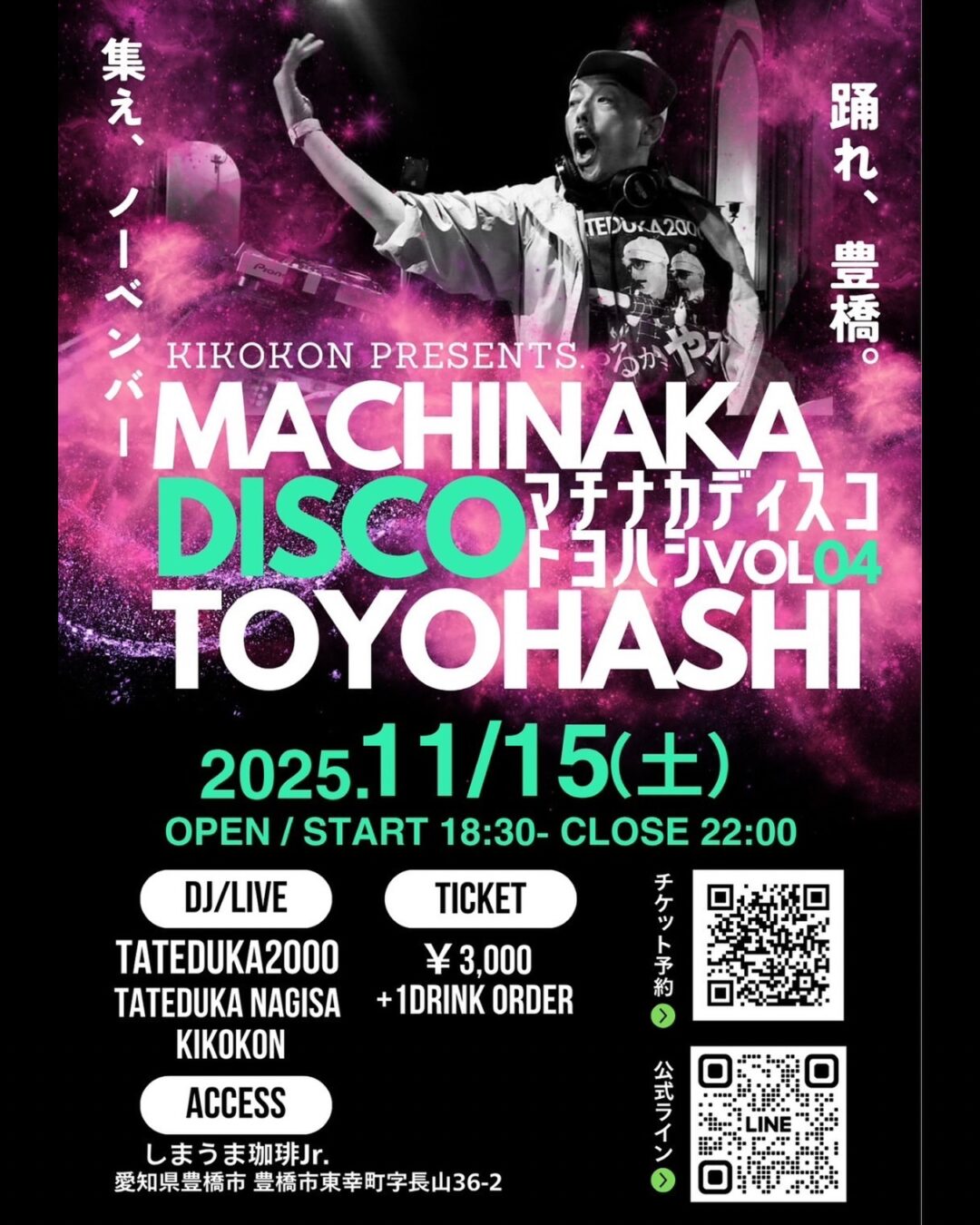 🔍「マチナカディスコ豊橋」で検索 or フライヤーQRコードから📲