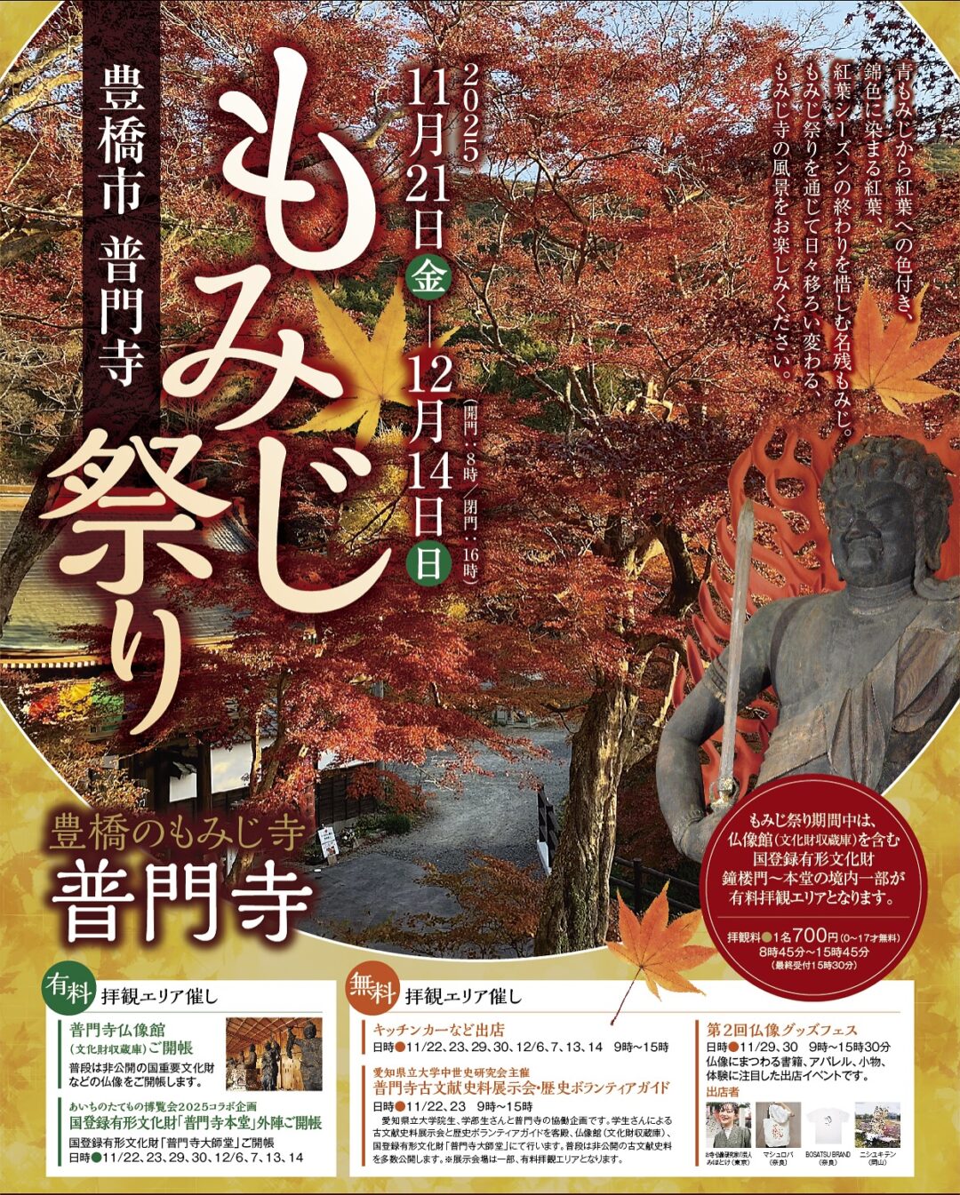 もみじ祭り期間中、普段は非公開の国重要文化財などを所蔵する「普門寺 仏像館(収蔵庫)」を毎日ご開帳します。