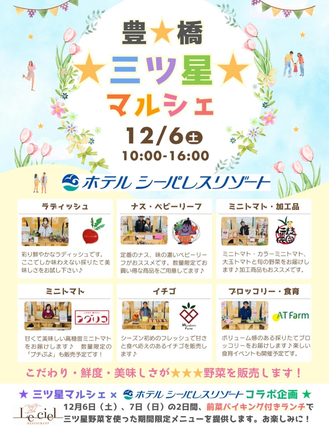 今回はマルシェと同時に 12/6(土) 三ツ星マルシェ(8店舗)も開催✨
