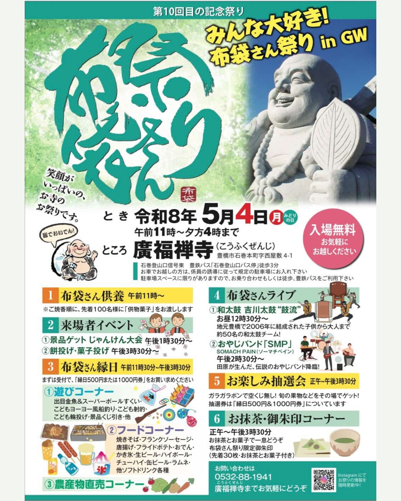 お寺のシンボルである「幸せ布袋尊」の供養に併せ、毎年開催されている本イベント。