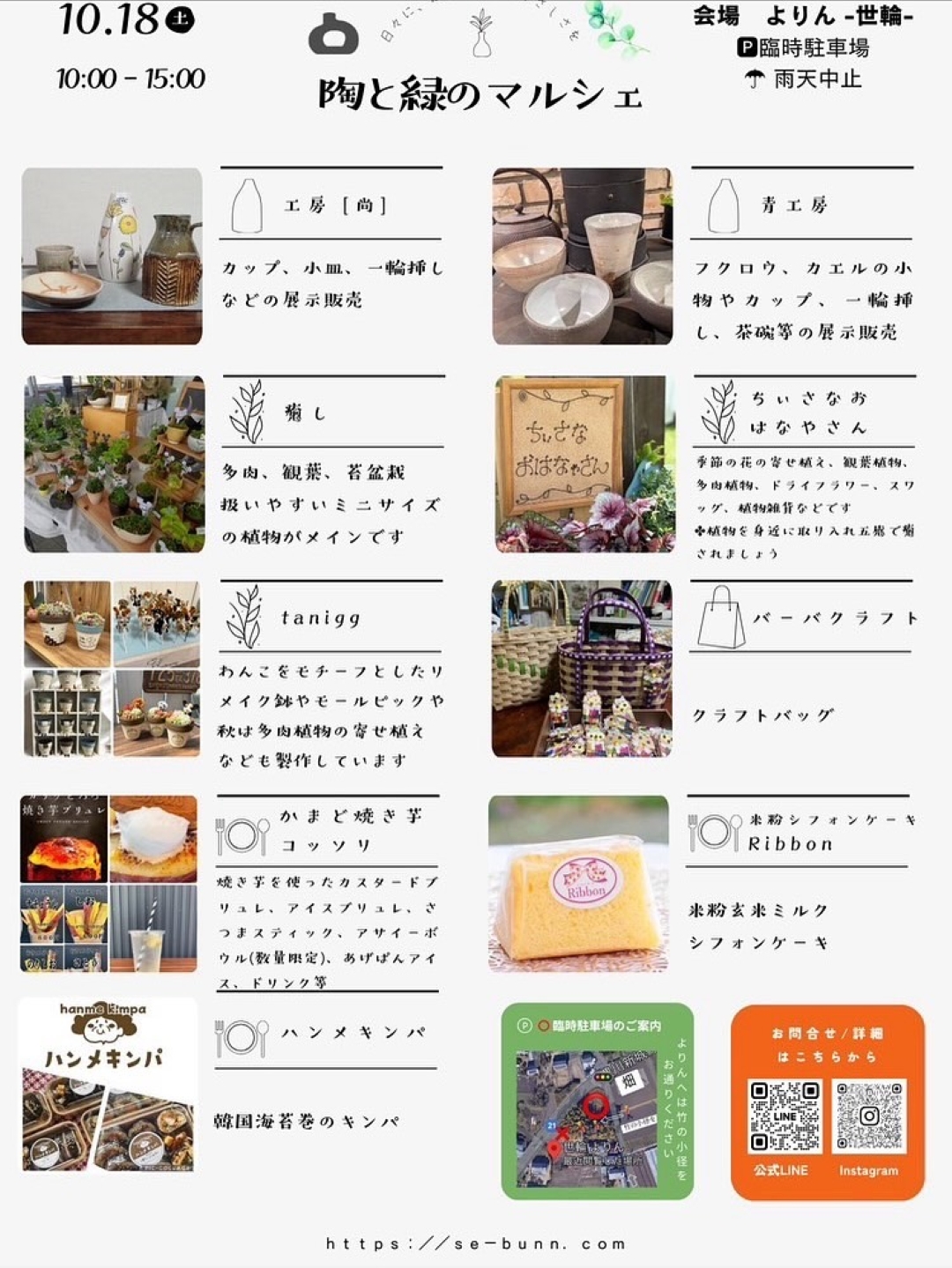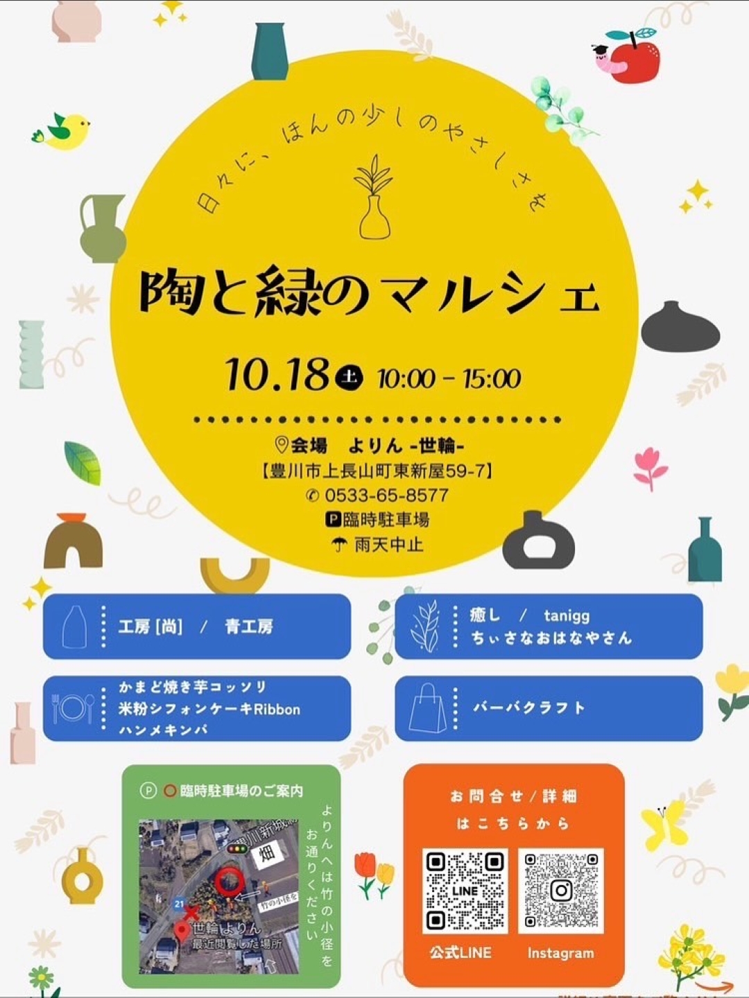 陶芸作品、植物販売が中心のマルシェです🍂 徐々にマルシェ日和になってきますね!