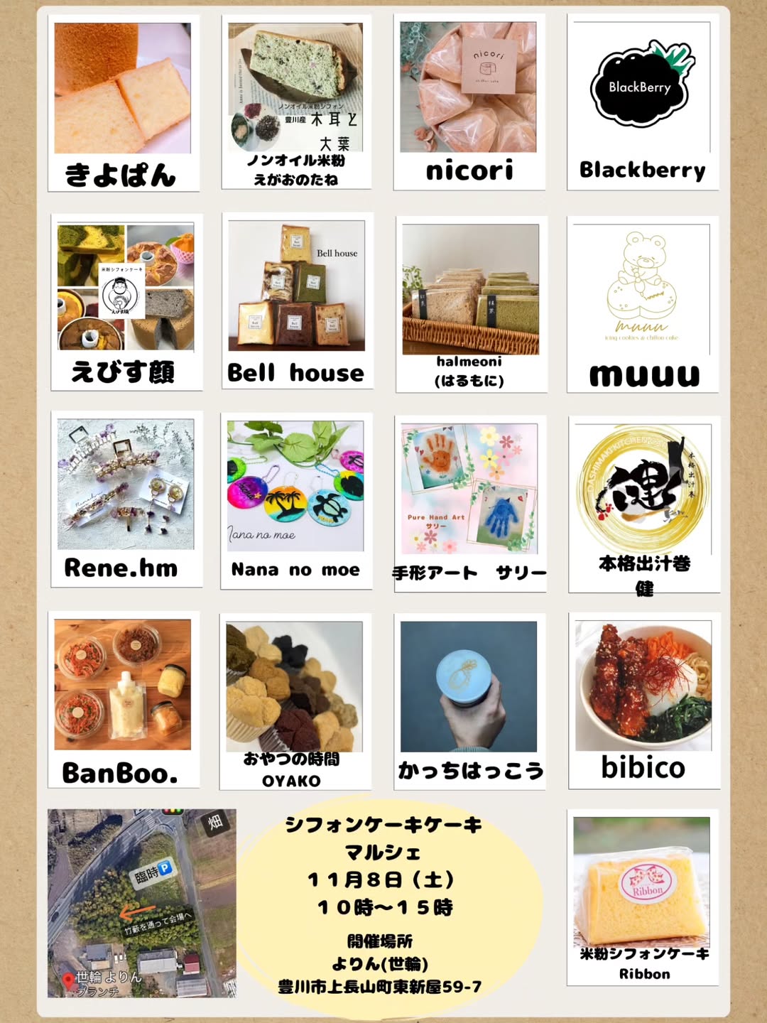 ふわふわシフォンや美味しいフード、雑貨やワークショップまで盛りだ くさん