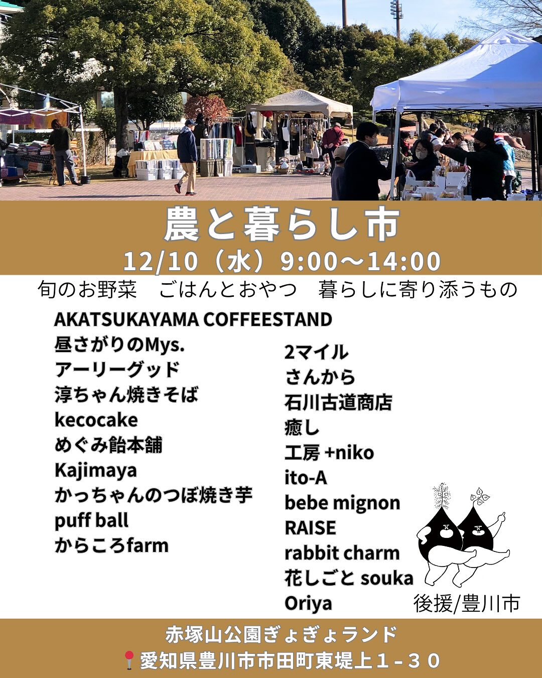 地元野菜、ごはんにおやつ、暮らしに寄り添うもの21店舗で開催です